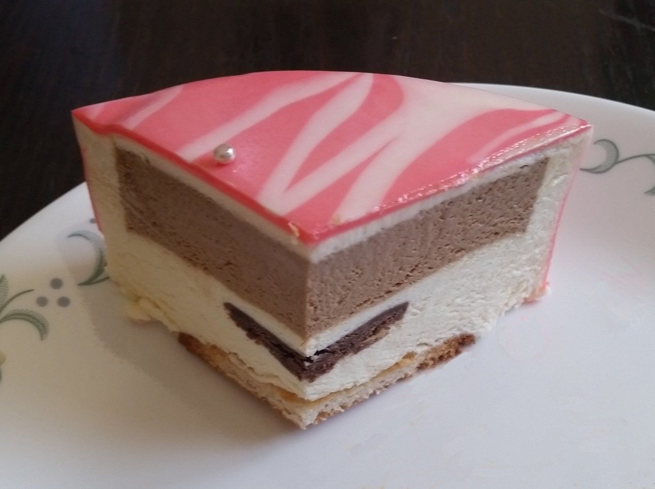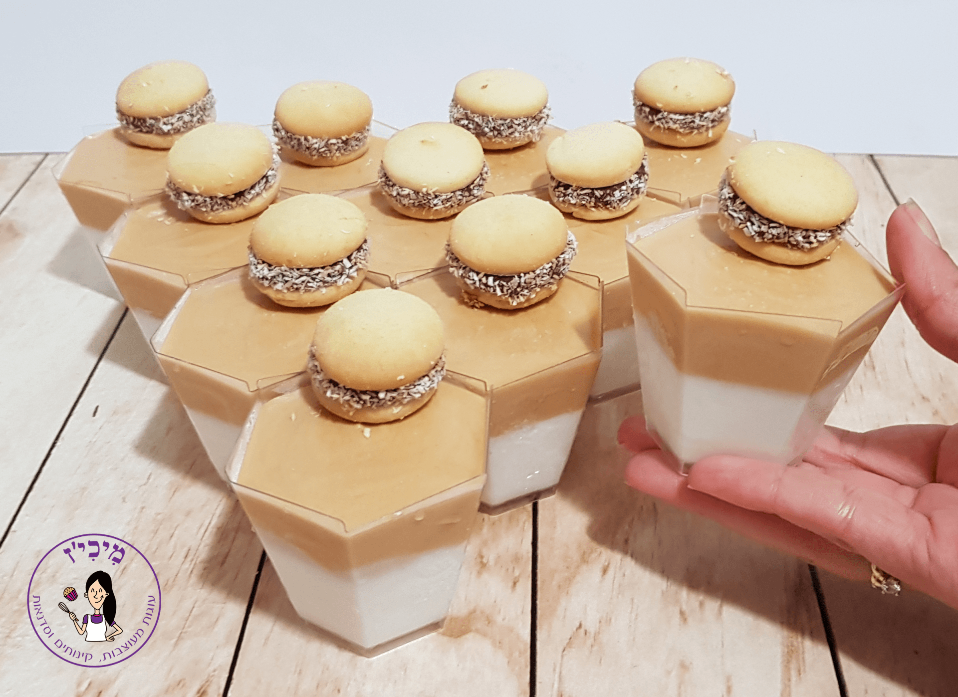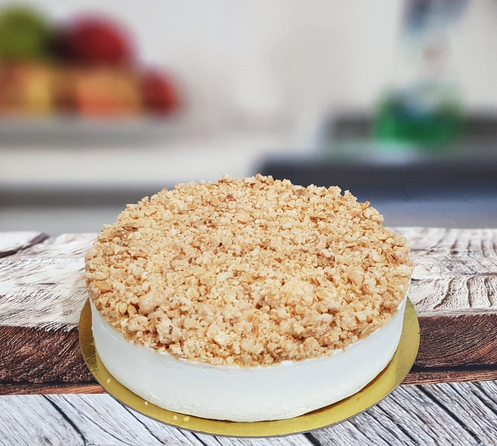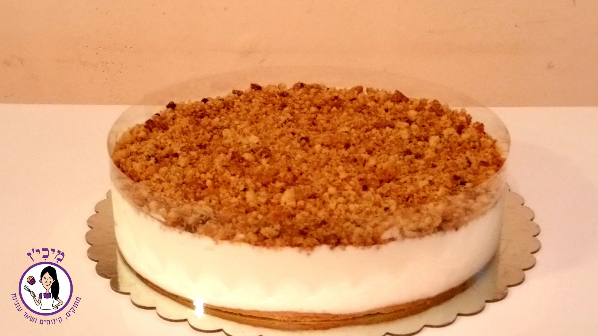 העוגה מורכבת משתי שכבות של בצק פריך שקדים ושתי שכבות של קרם מסקרפונה ושמנת עם נגיעות ריבת חלב.