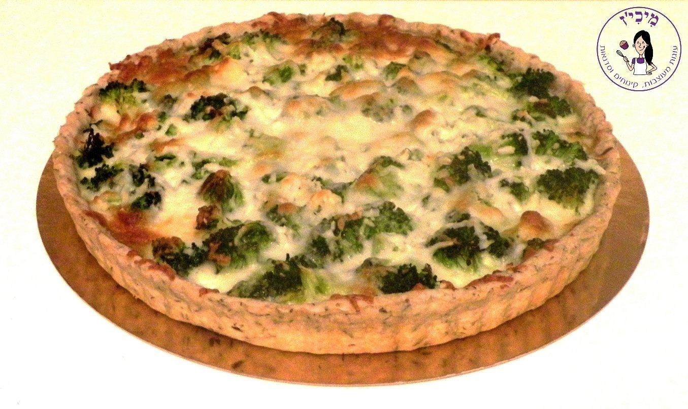 קיש הברוקולי שלנו עשוי מבצק פריך מלוח, רוטב רויאל, ותערובת של מוצרלה פיקורינו.