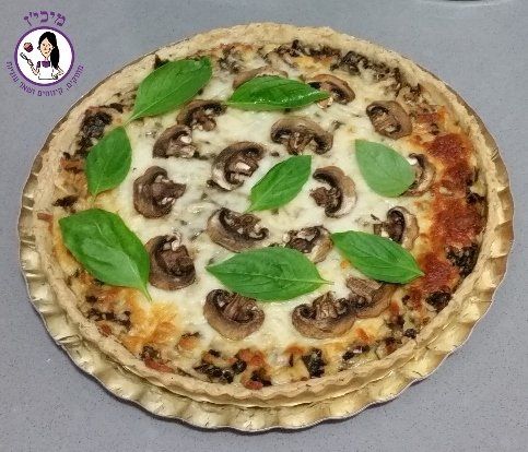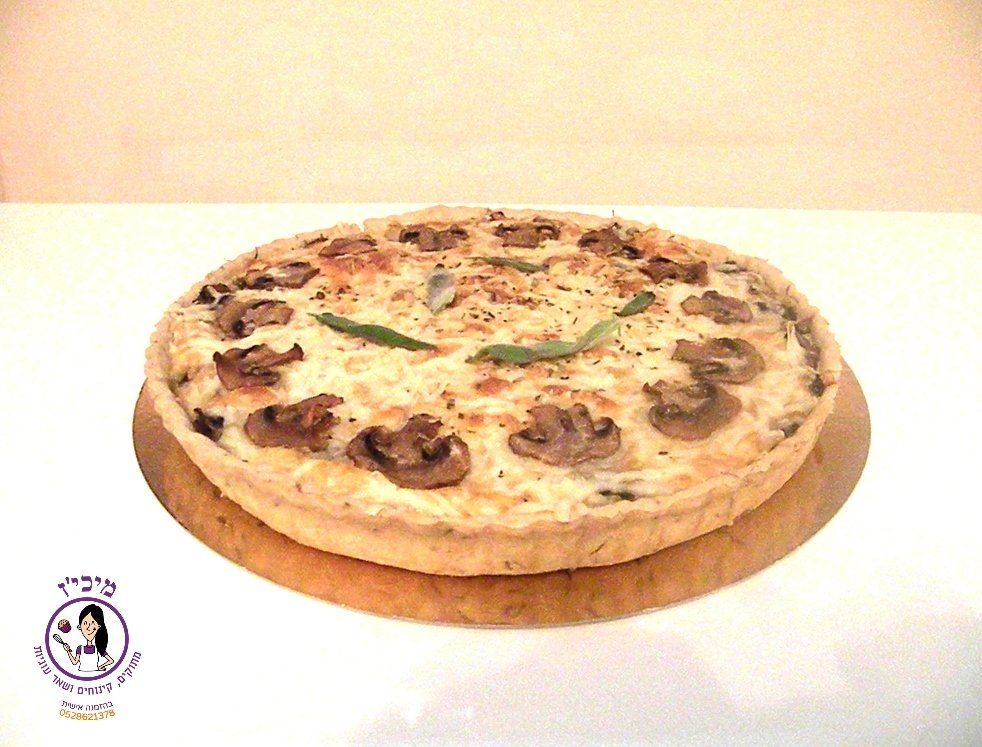 קיש הפטריות שלנו עשוי מבצק פריך מלוח, רוטב רויאל, ותערובת גבינות של קשקשבל ומוצרלה.